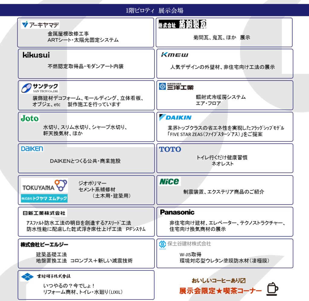 マルマストリグ主催で建築材料や住宅設備メーカー様17社に出展していただき、