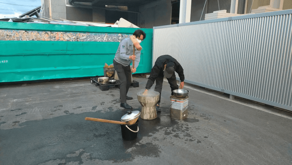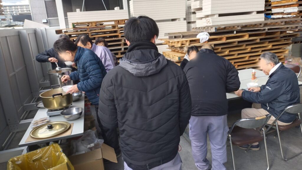 寒空の中、社員が交代で ❝ぺったんぺったん❞ がんばりました!